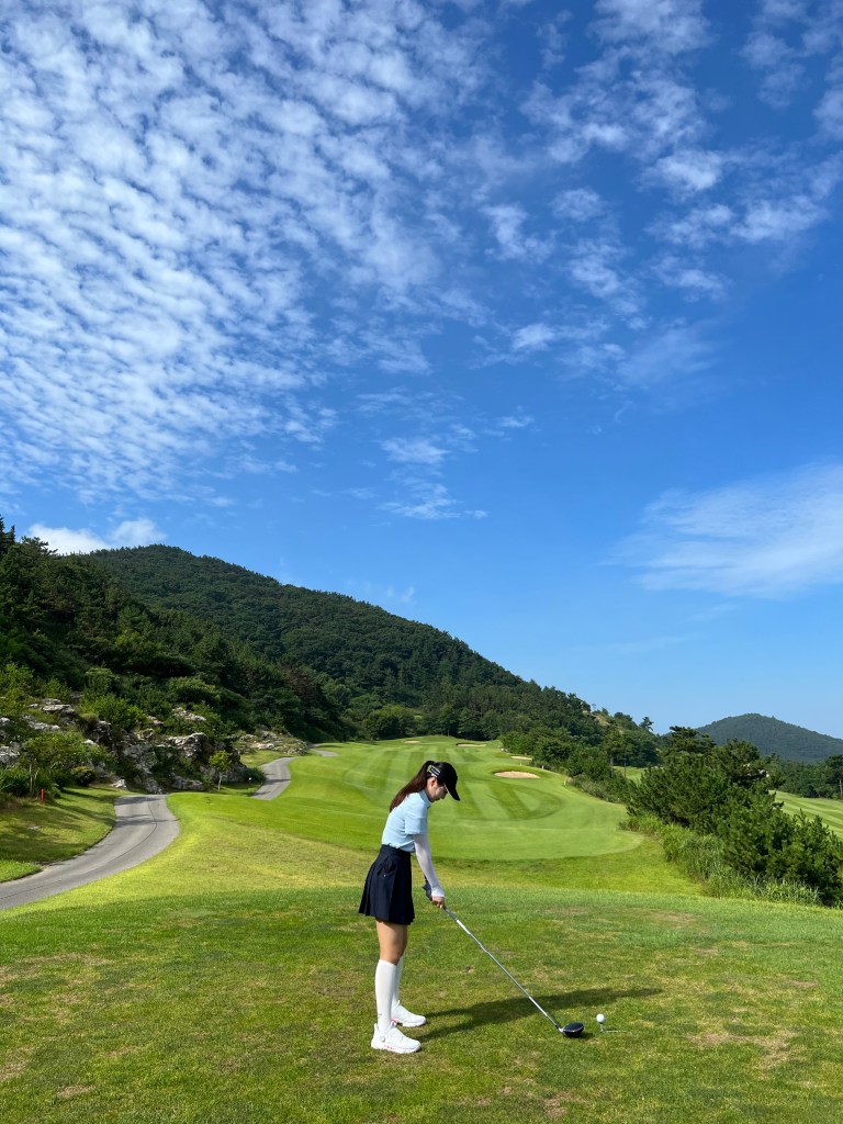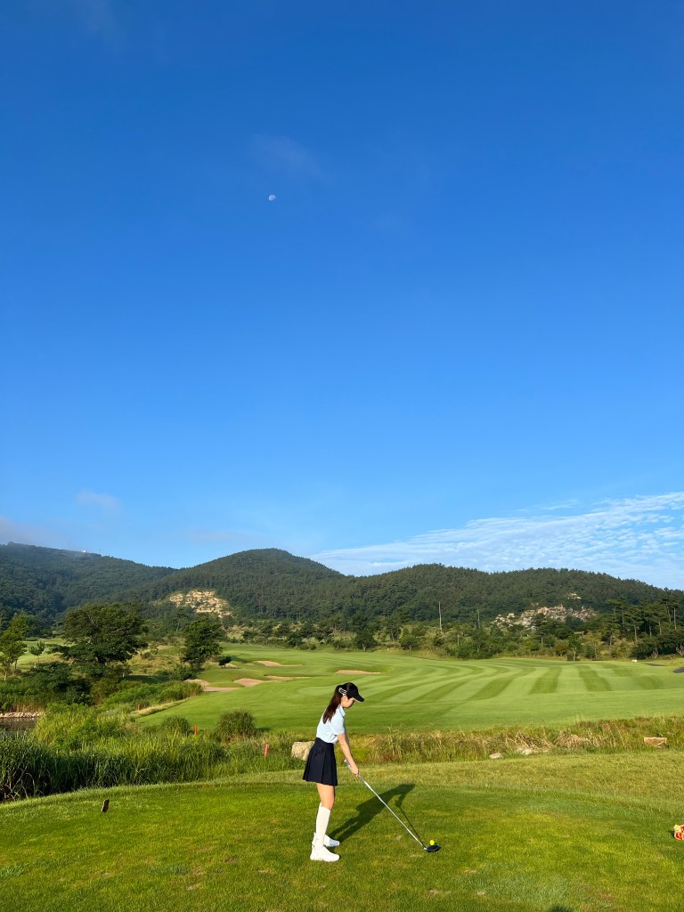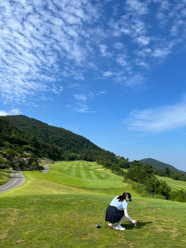 진짜 너무 예뻤다 오션뷰 코스로 인, 밸리 코스로 아웃 풍경이 다했던 골린이의 첫 라운딩…🩵 날씨 온도 습도 습도랑 온도는 좀 너무했던 땡볕 란딩이었지만 그래도 조아,,,